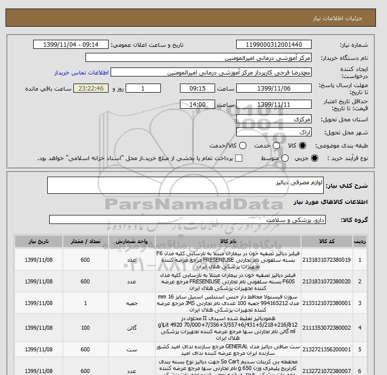 نام دستگاه خریدار:مرکز آموزشی درمانی امیرالمومنین