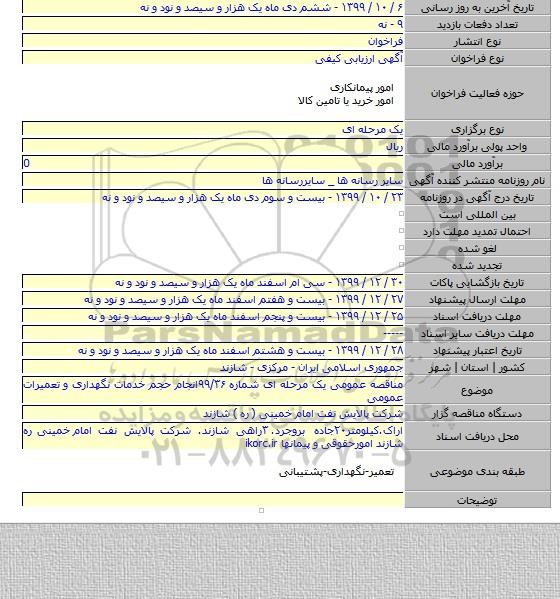 مناقصه عمومی یک مرحله ای شماره ۹۹/۳۶انجام حجم خدمات نگهداری و تعمیرات عمومی