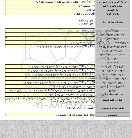 مناقصه عمومی یک مرحله ای شماره ۹۹/۲۷ انجام حجم خدمات پشتیبانی اداری