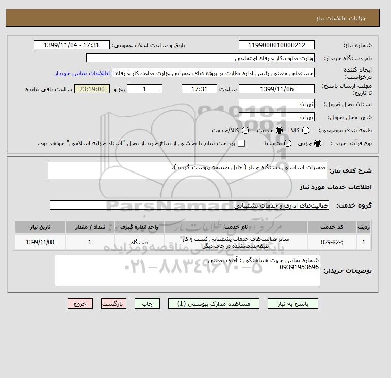 شرح کلی نیاز: تعمیرات اساسی دستگاه چیلر ( فایل ضمیمه پیوست گردید).