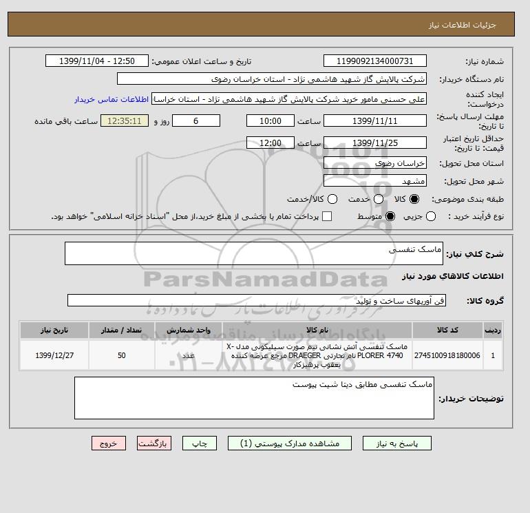 نام دستگاه خریدار:شرکت پالایش گاز شهید هاشمی نژاد - استان خراسان رضوی