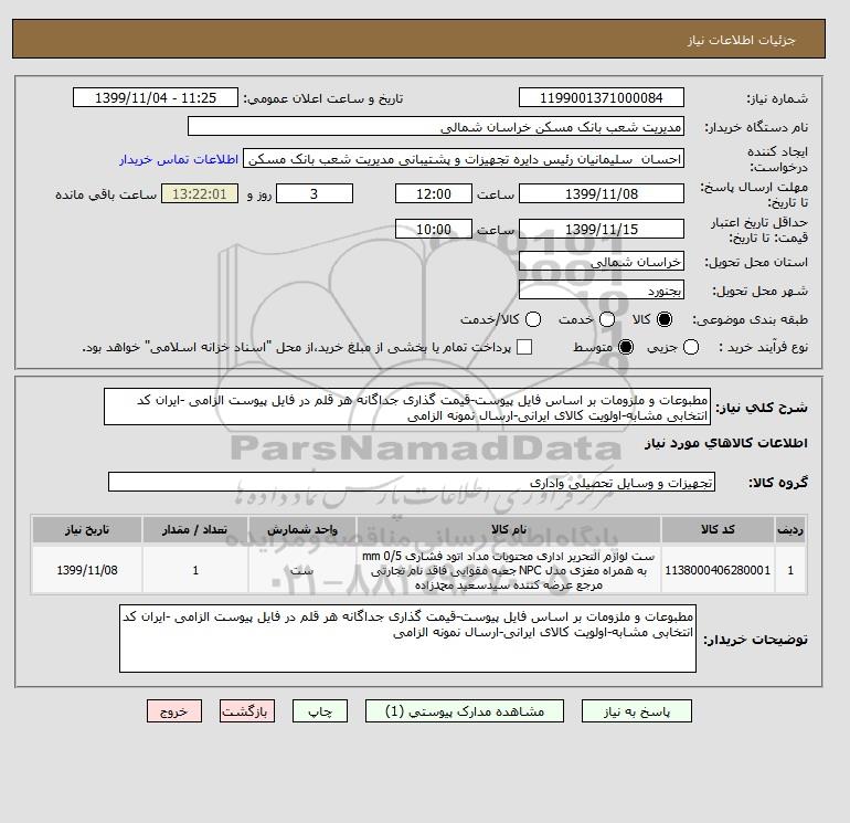 نام دستگاه خریدار:مدیریت شعب بانک مسکن خراسان شمالی
