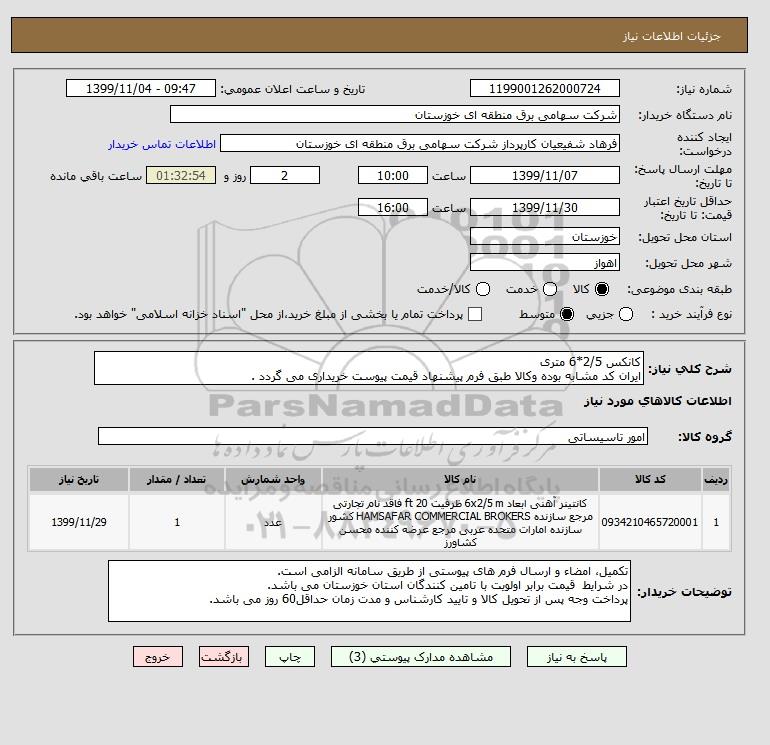 نام دستگاه خریدار:شرکت سهامی برق منطقه ای خوزستان