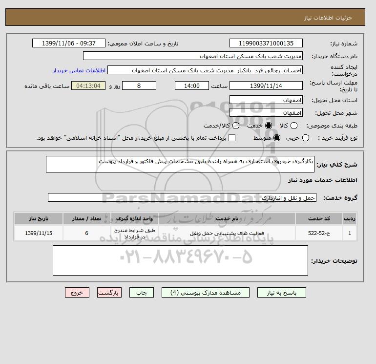 شرح کلی نیاز: بکارگیری خودروی استیجاری به همراه راننده طبق مشخصات پیش فاکتور و قرارداد پیوست