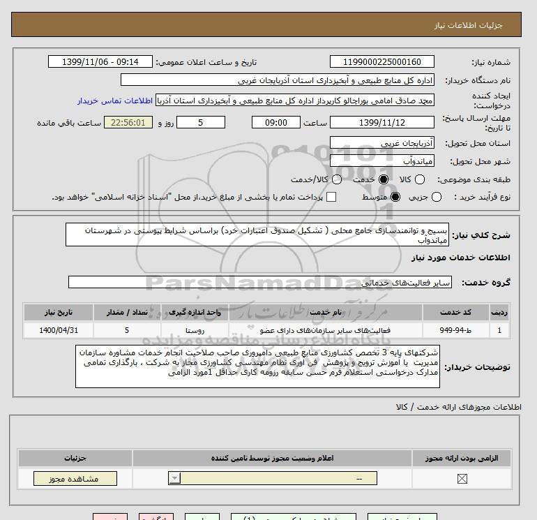 شرح کلی نیاز: بسیج و توانمندسازی جامع محلی ( تشکیل صندوق اعتبارات خرد) براساس شرایط پیوستی در شهرستان میاندوآب
