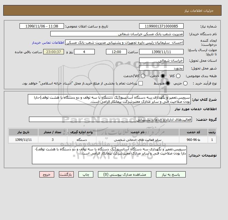 نام دستگاه خریدار:مدیریت شعب بانک مسکن خراسان شمالی