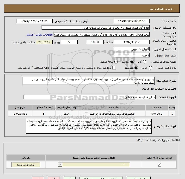شرح کلی نیاز: بسیج و توانمندسازی جامع محلی ( مدیریت صندوق های توسعه در روستا) براساس شرایط پیوستی در شهرستان ارومیه