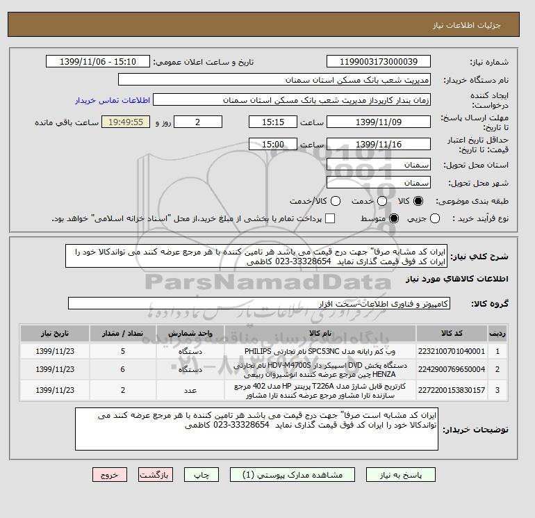 نام دستگاه خریدار:مدیریت شعب بانک مسکن استان سمنان