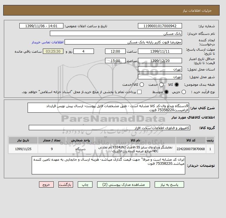 شرح کلی نیاز: 9دستگاه ویدئو وال-کد کالا مشابه است - طبق مشخصات فایل پیوست- ارسال پیش نویس قرارداد الزامیست75358220 فتوت