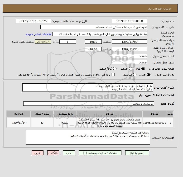 نام دستگاه خریدار:اداره امور شعب بانک مسکن استان همدان