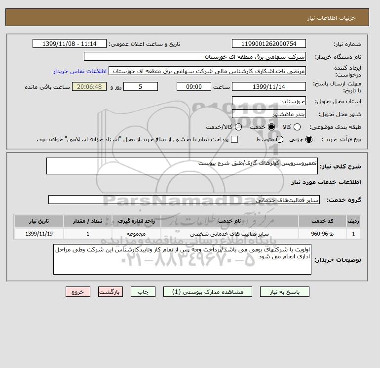 شماره نیاز: 1199001262000754