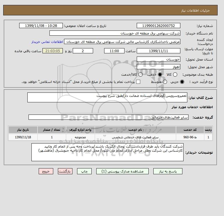شرح کلی نیاز: تعمیروسرویس کولرهای ایستاده ضمانت دار/طبق شرح پیوست