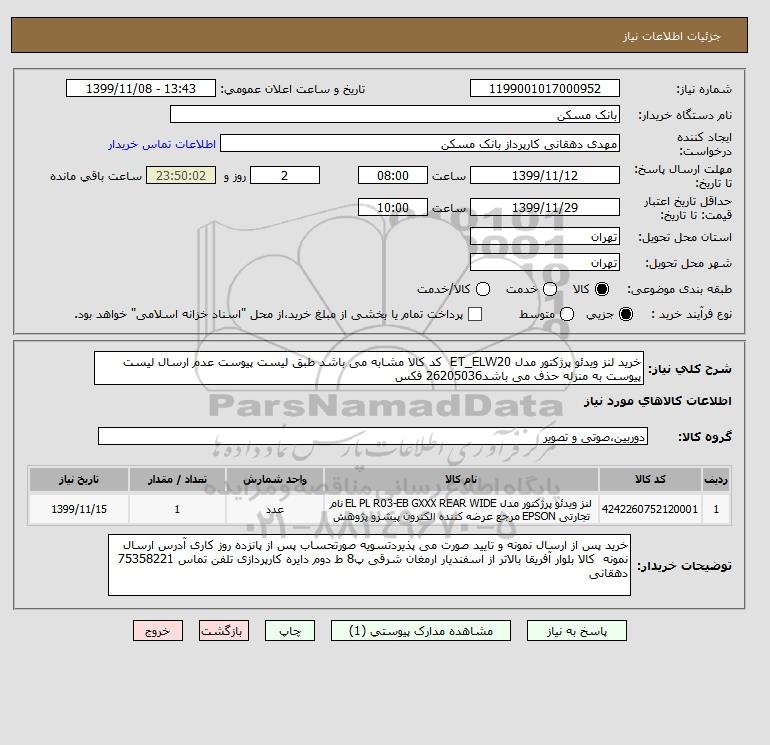 شرح کلی نیاز: خرید لنز ویدئو پرژکتور مدل ET_ELW20 کد کالا مشابه می باشد طبق لیست پیوست عدم ارسال لیست پیوست به منزله حذف می باشد26205036 فکس