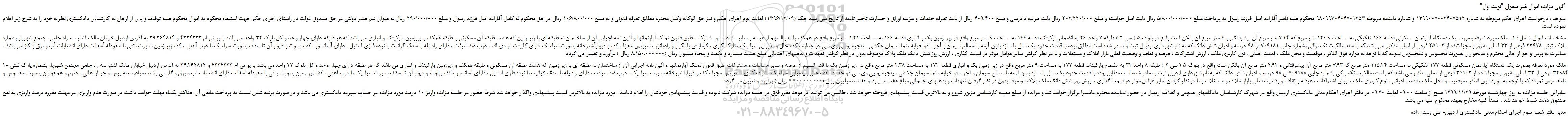 "آگهی مزایده اموال غیر منقول "نوبت اول