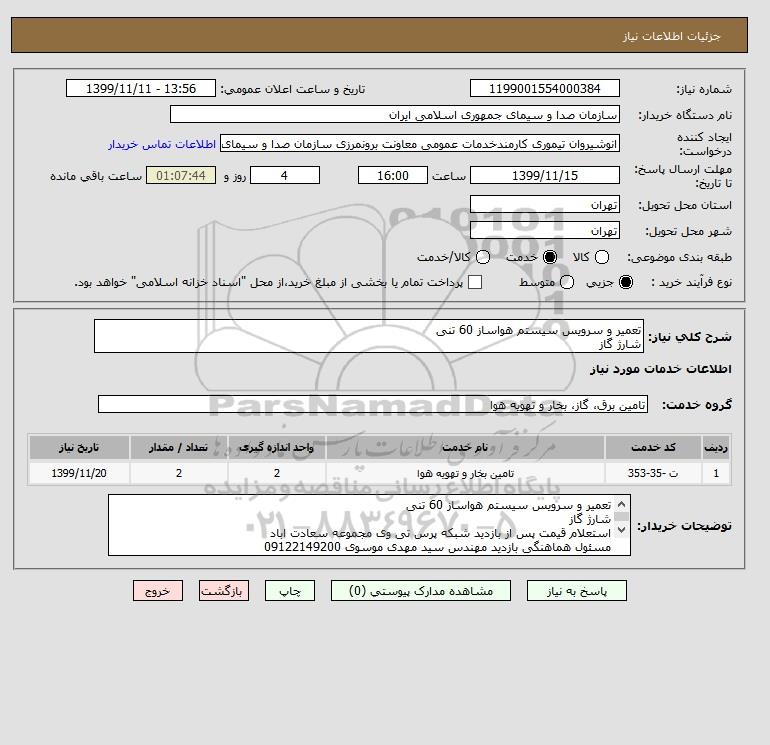 شرح کلی نیاز: تعمیر و سرویس سیستم هواساز 60 تنی