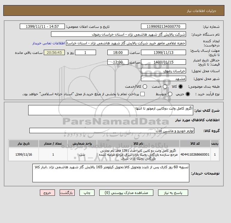 نام دستگاه خریدار:شرکت پالایش گاز شهید هاشمی نژاد - استان خراسان رضوی