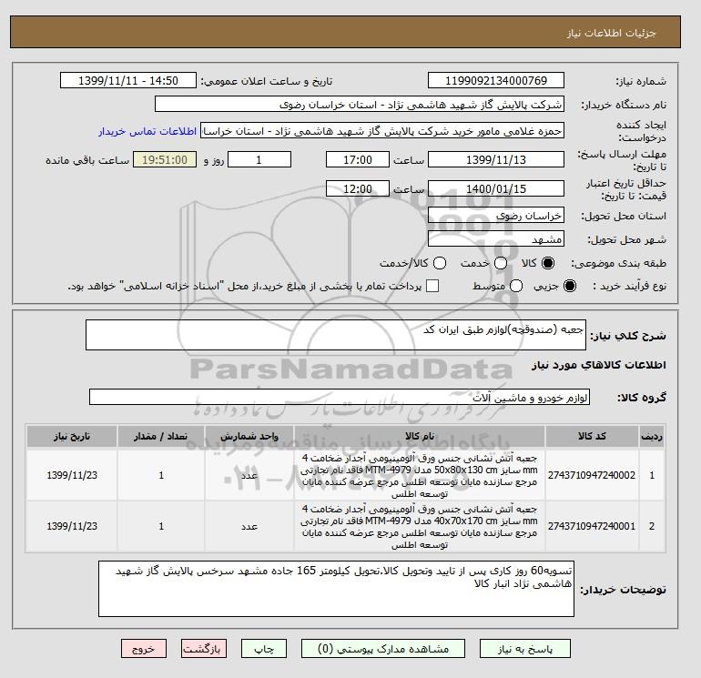 شرح کلی نیاز: جعبه (صندوقچه)لوازم طبق ایران کد