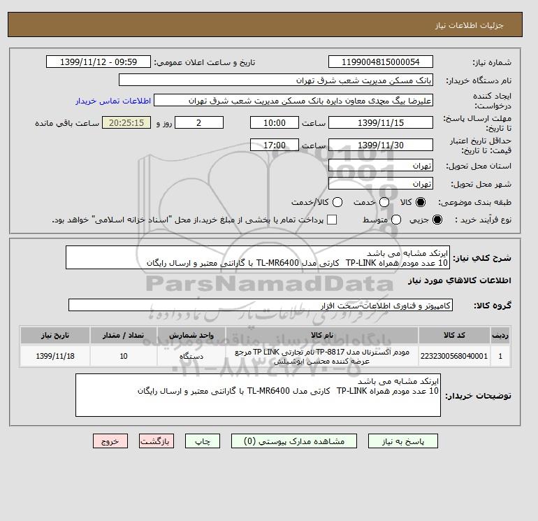 نام دستگاه خریدار:بانک مسکن مدیریت شعب شرق تهران