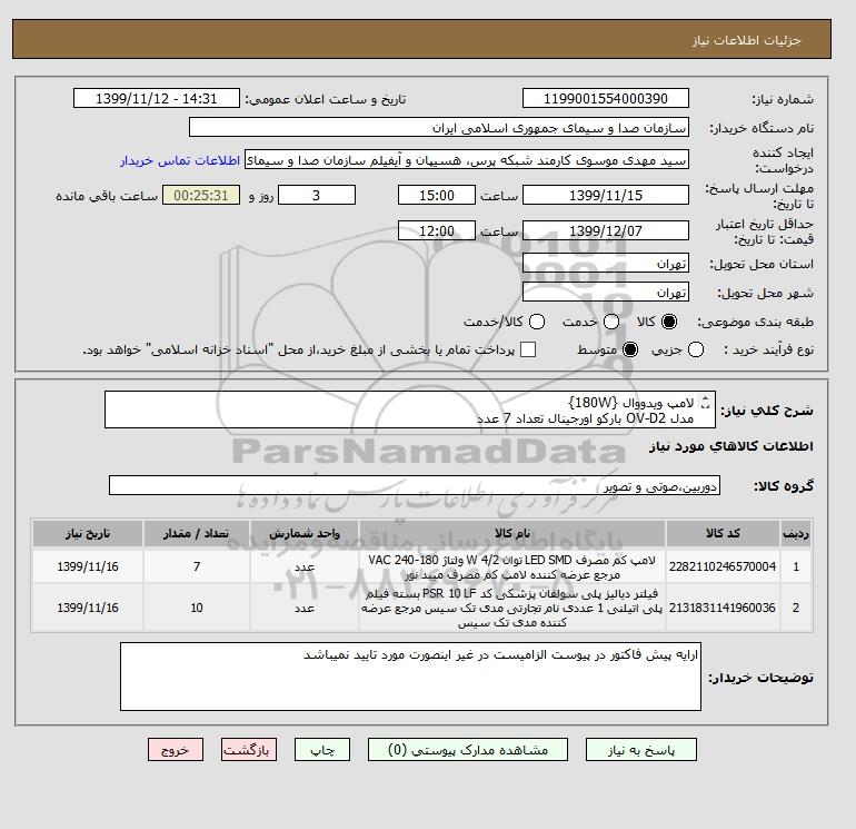 نام دستگاه خریدار:سازمان صدا و سیمای جمهوری اسلامی ایران
