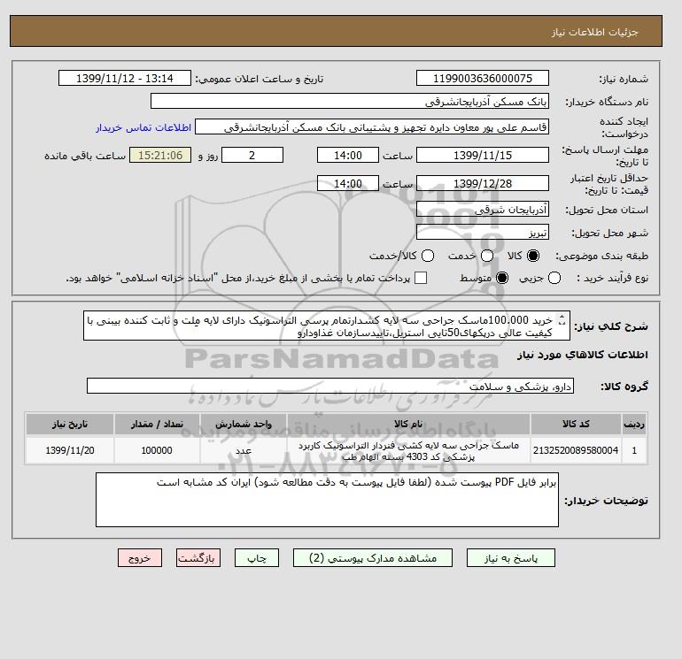 نام دستگاه خریدار:بانک مسکن آذربایجانشرقی