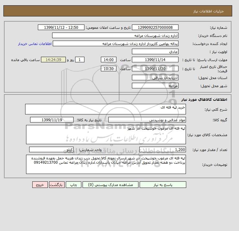 نام دستگاه خریدار:اداره زندان شهرستان مراغه