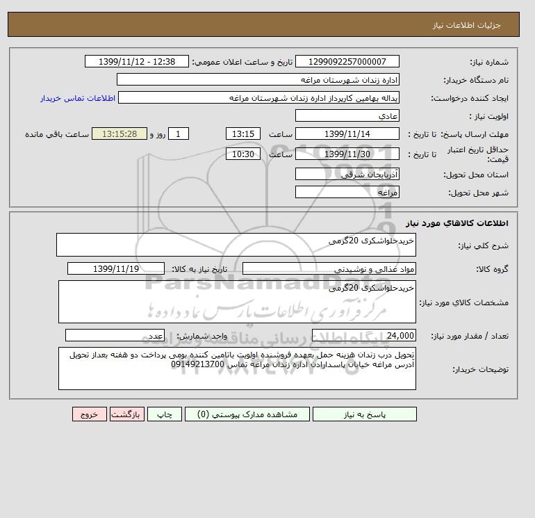 نام دستگاه خریدار:اداره زندان شهرستان مراغه