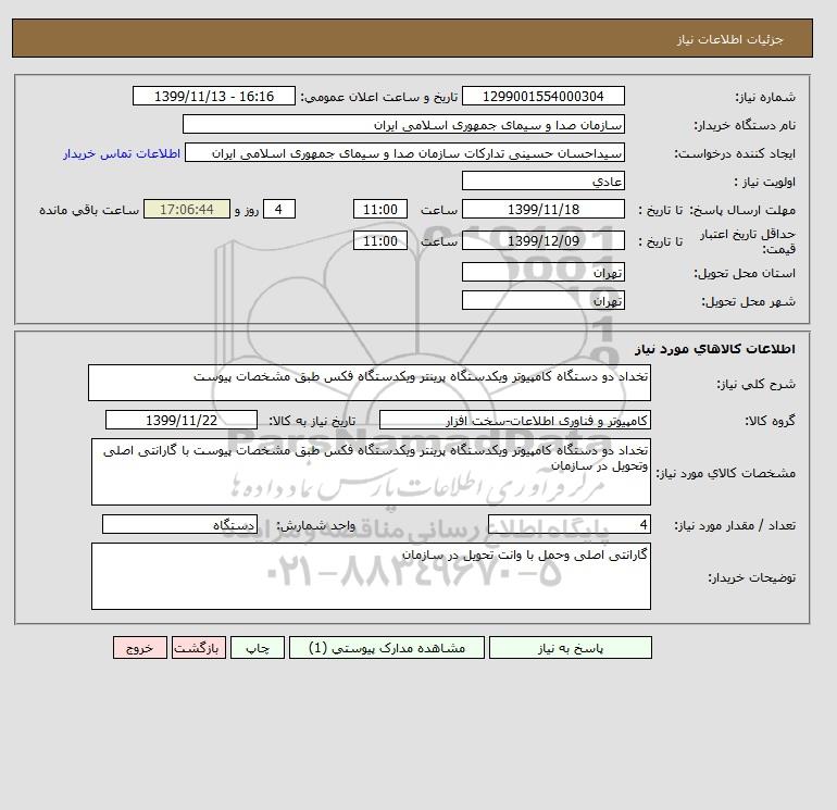 نام دستگاه خریدار:سازمان صدا و سیمای جمهوری اسلامی ایران