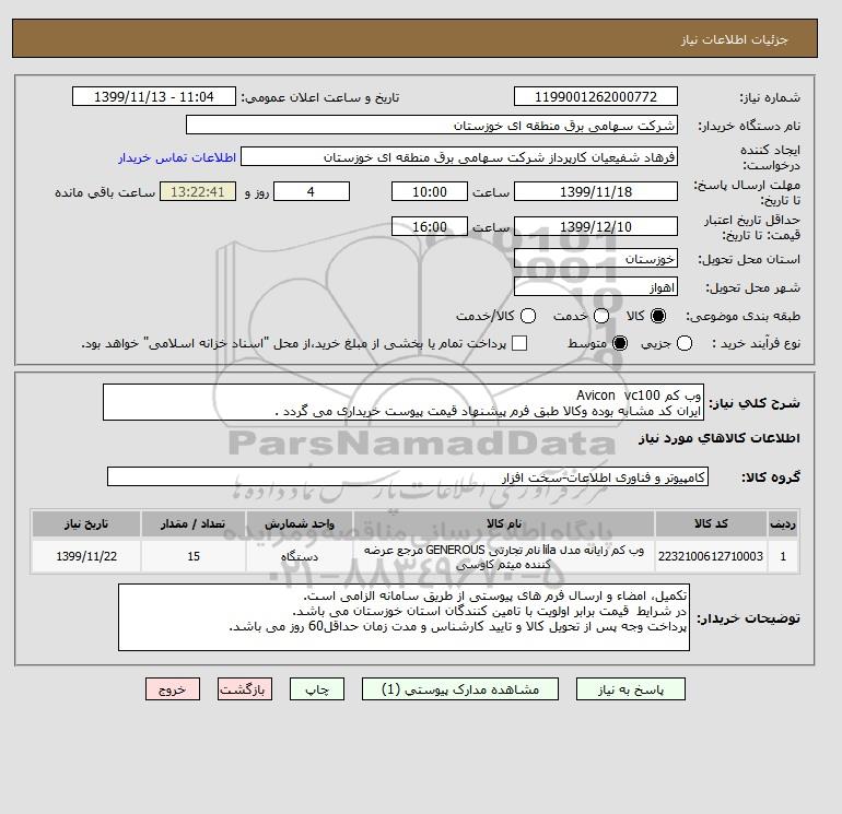 نام دستگاه خریدار:شرکت سهامی برق منطقه ای خوزستان