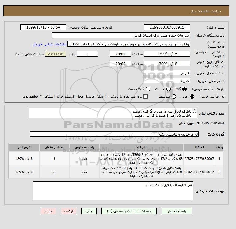 استعلام باطری 150 آمپر 2 عدد با گارانتی معتبر باطری 66 آمپر 1 عدد با گارانتی معتبر هزینه ارسال بر عهده تامین کننده است , استعلام باطری 150 آمپر 2 عدد با گارانتی معتبر باطری 66 آمپر 1 عدد با گارانتی معتبر هزینه ارسال بر عهده تامین کننده است