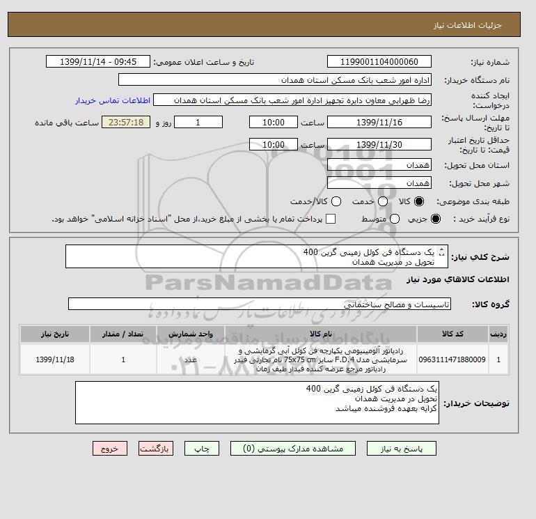 شرح کلی نیاز: یک دستگاه فن کوئل زمینی گرین 400