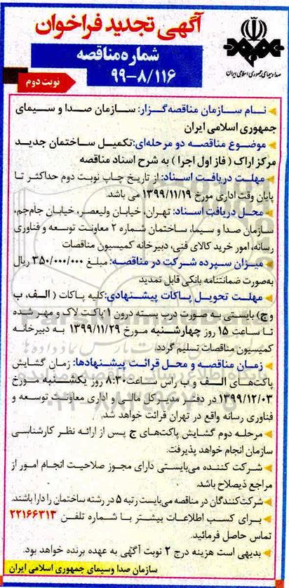 - نام سازمان مناقصه گزار: سازمان صدا و سیمای جمهوری اسلامی ایران