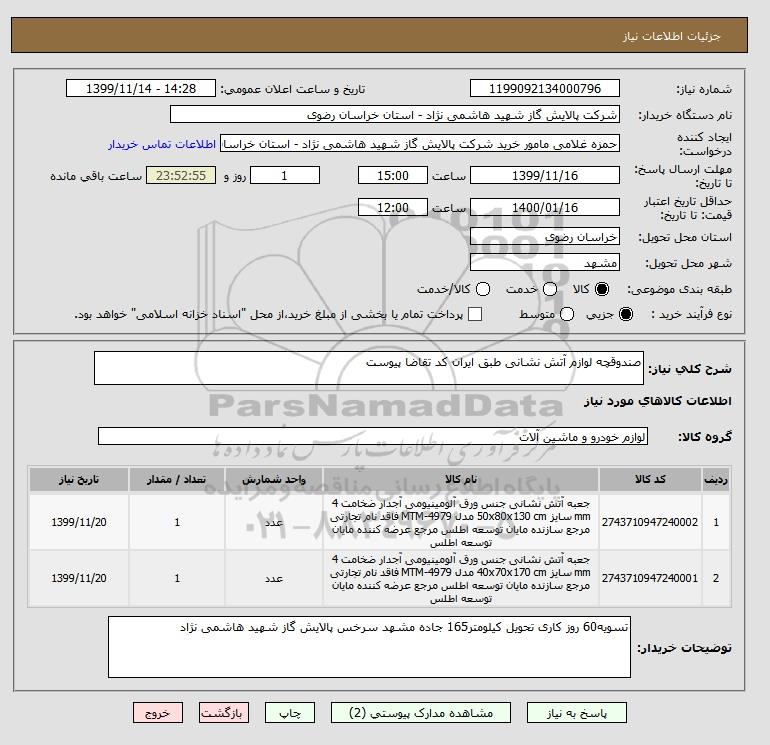 نام دستگاه خریدار:شرکت پالایش گاز شهید هاشمی نژاد - استان خراسان رضوی