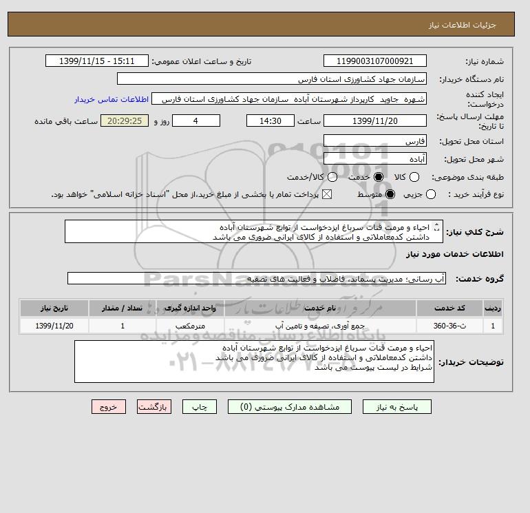 شرح کلی نیاز: احیاء و مرمت قنات سرباغ ایزدخواست از توابع شهرستان آباده