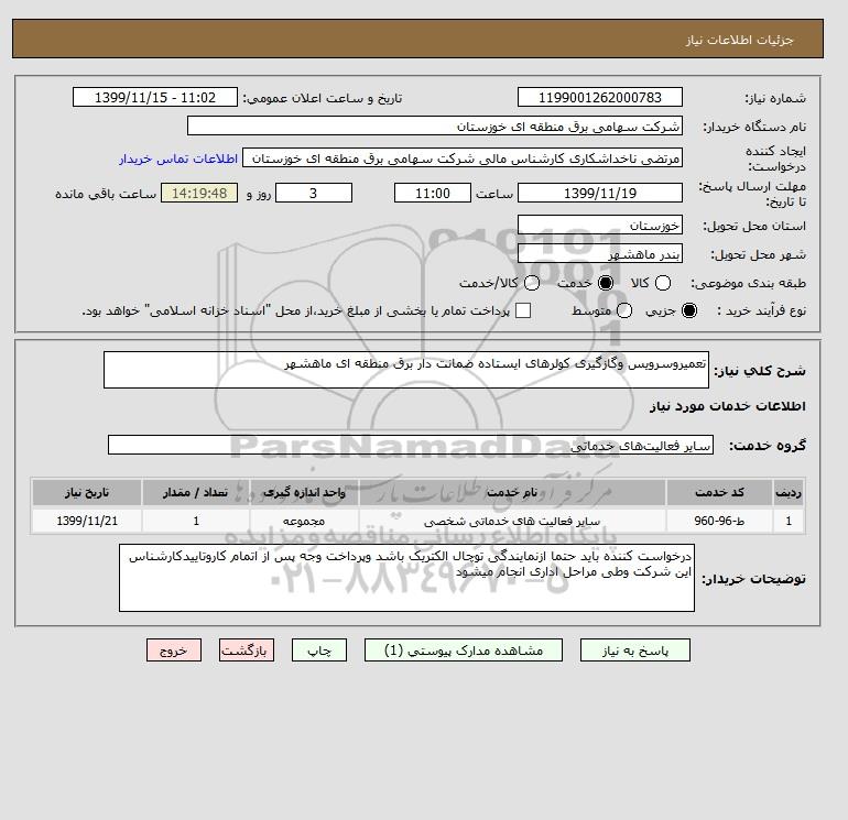 شرح کلی نیاز: تعمیروسرویس وگازگیری کولرهای ایستاده ضمانت دار برق منطقه ای ماهشهر