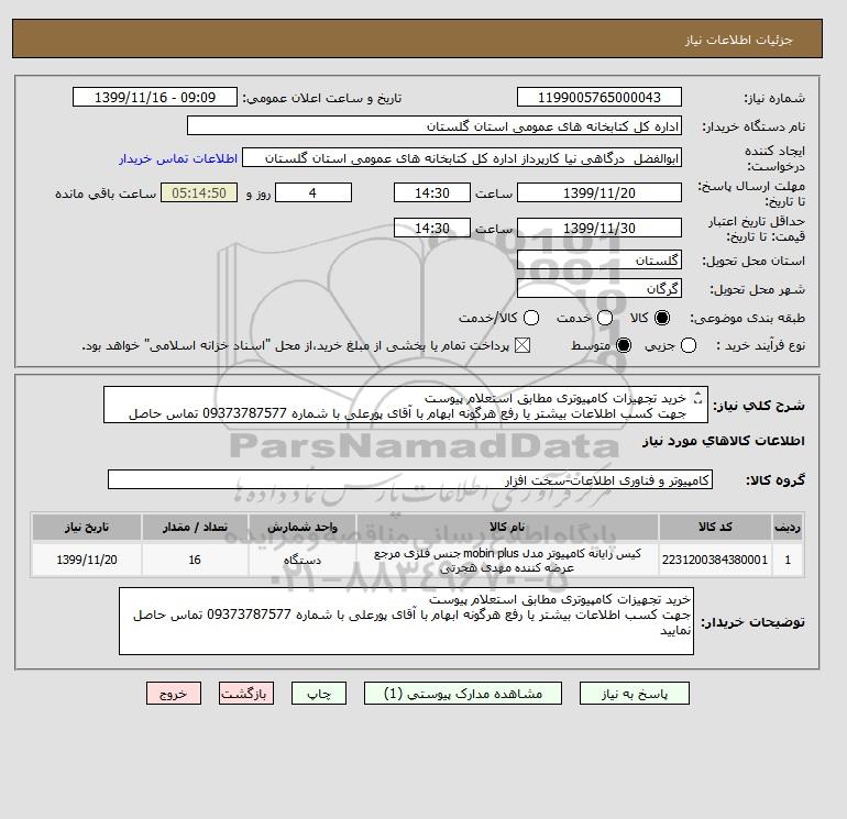 نام دستگاه خریدار:اداره کل کتابخانه های عمومی استان گلستان