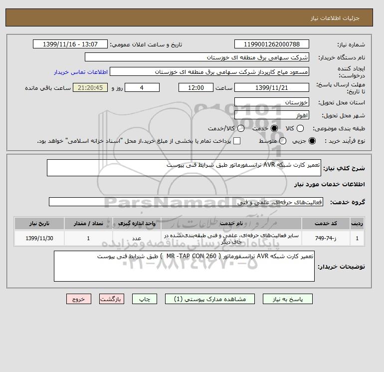 توضیحات خریدار:تعمیر کارت شبکه AVR ترانسفورماتور ( MR -TAP CON 260 ) طبق شرایط فنی پیوست