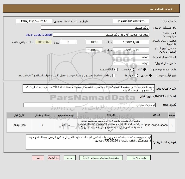 شرح کلی نیاز: خرید اقلام حفاظتی چشم الکترونیک،پایه چشمی،دتکتور،پدال،ریموت و سه شاخه mk مطابق لیست-ایران کد مشابه جهت قیمت گذاری