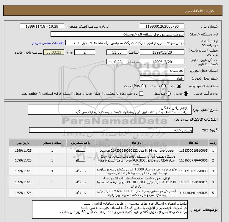 شرح کلی نیاز: لوازم برقی خانگی