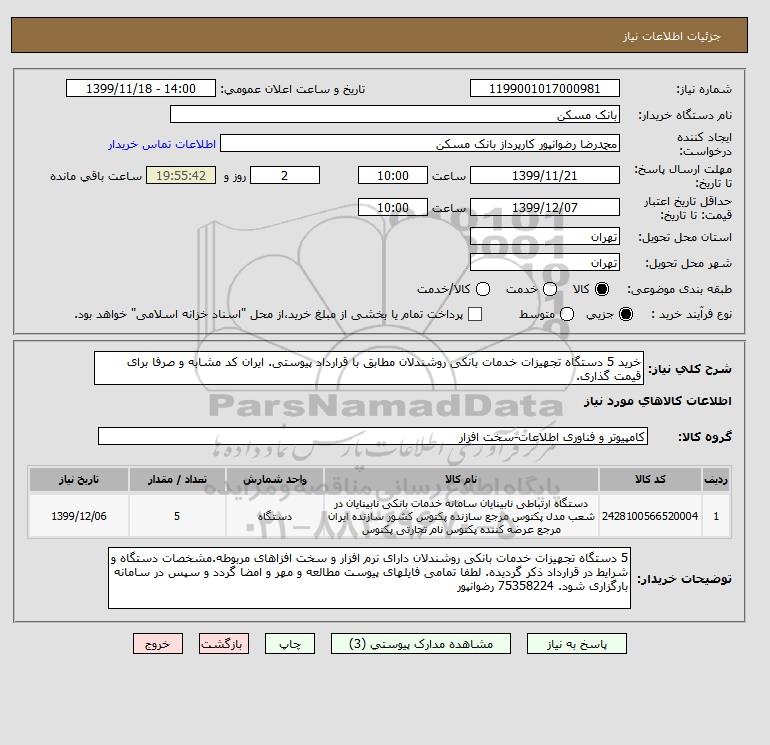 نام دستگاه خریدار:بانک مسکن