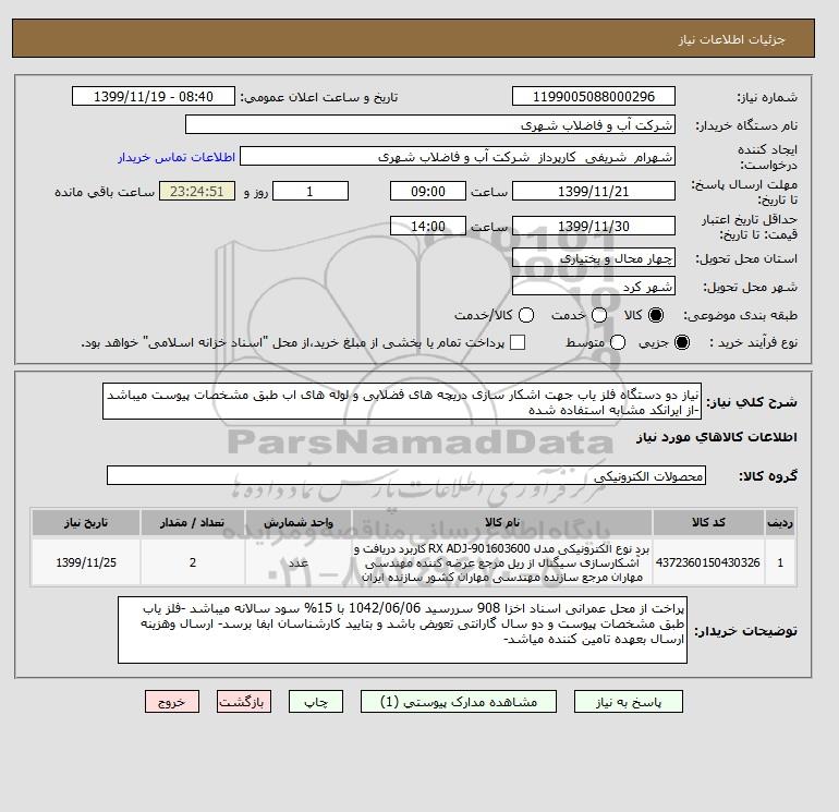 نام دستگاه خریدار:شرکت آب و فاضلاب شهری