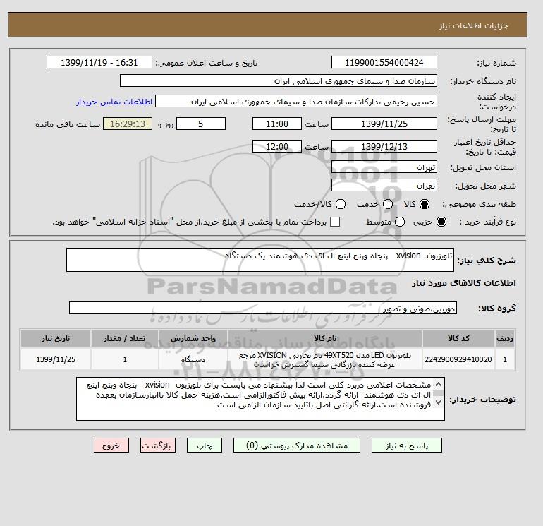 نام دستگاه خریدار:سازمان صدا و سیمای جمهوری اسلامی ایران