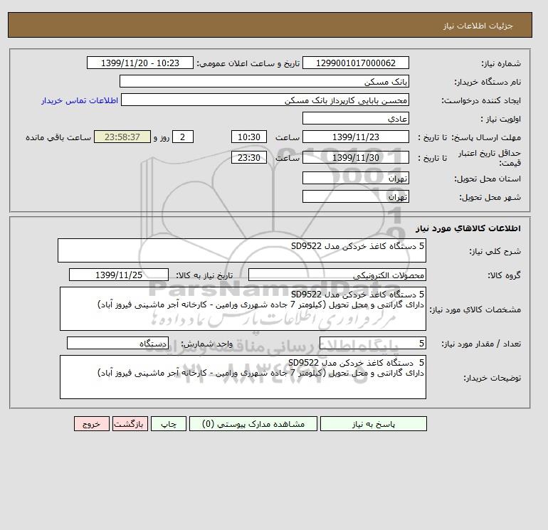 شرح کلی نیاز: 5 دستگاه کاغذ خردکن مدل SD9522