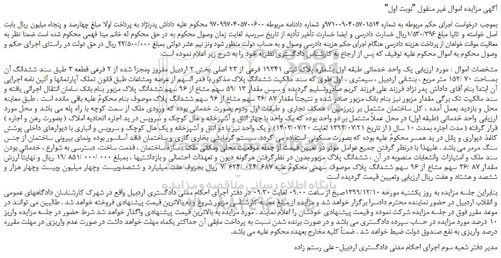 "آگهی مزایده اموال غیر منقول "نوبت اول