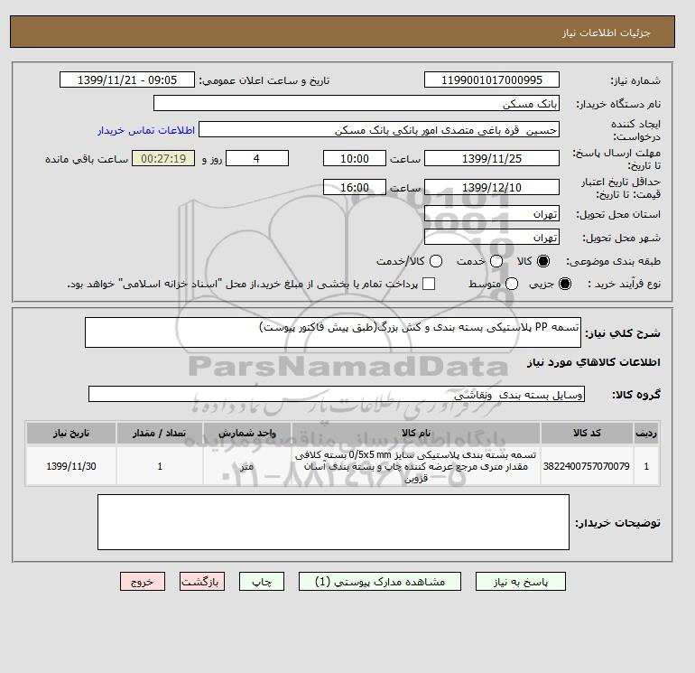 استعلام تسمه PP پلاستیکی بسته بندی و کش بزرگ(طبق پیش فاکتور پیوست), استعلام تسمه PP پلاستیکی بسته بندی و کش بزرگ(طبق پیش فاکتور پیوست)