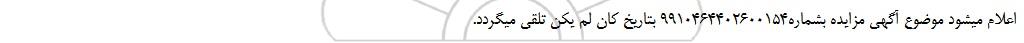 اعلام میشود موضوع آگهی مزایده بشماره9910464402600154 بتاریخ کان لم یکن تلقی میگردد.