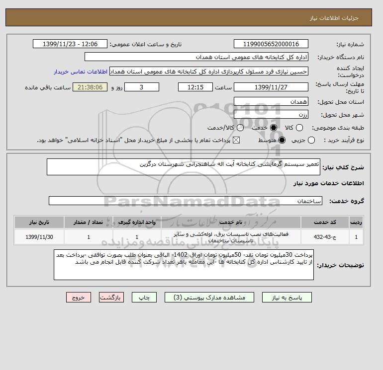 استعلام تعمیر سیستم گرمایشی کتابخانه آیت اله شاهنجرانی شهرستان درگزین , استعلام تعمیر سیستم گرمایشی کتابخانه آیت اله شاهنجرانی شهرستان درگزین