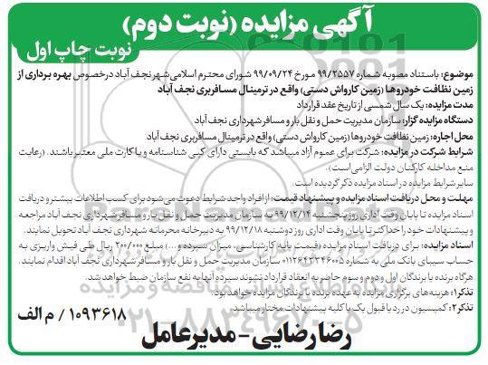 مزایده بهره برداری از زمین نظافت خودروها نوبت دوم چاپ اول