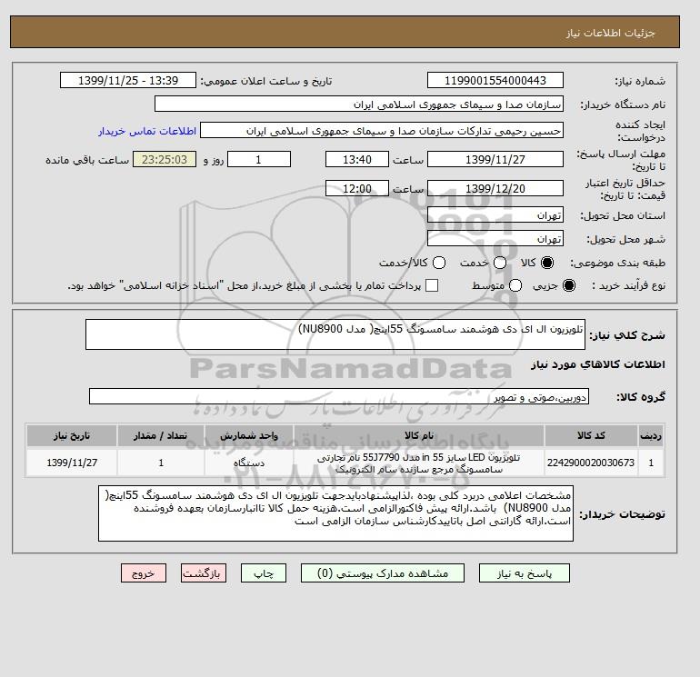 شرح کلی نیاز: تلویزیون ال ای دی هوشمند سامسونگ 55اینچ( مدل NU8900)