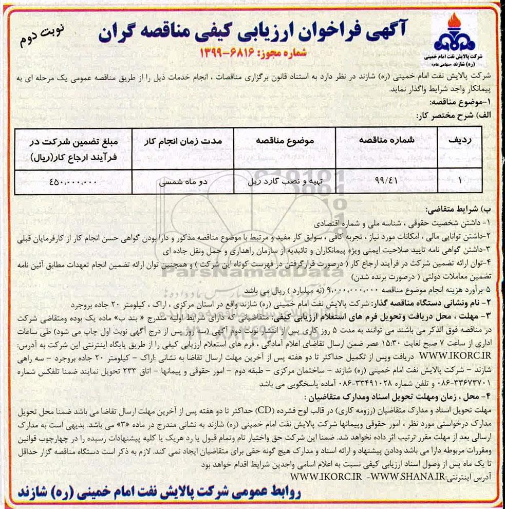 | 1 | 99/41 | تهیه و نصب گاردریل | دو ماه شمسی | 450.000.000 |