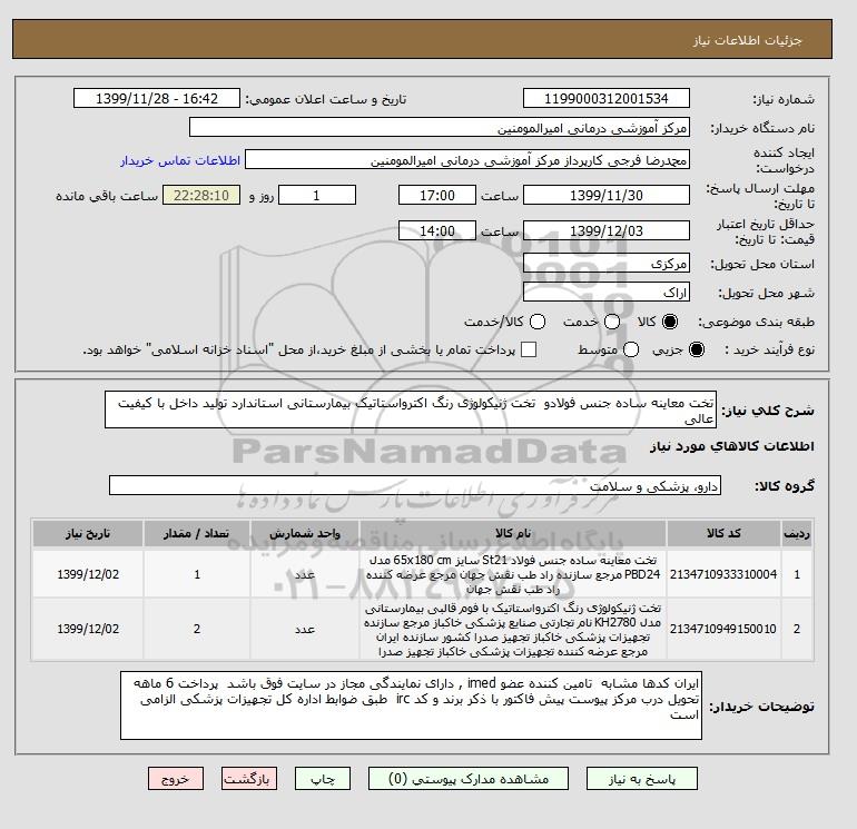 شرح کلی نیاز: تخت معاینه ساده جنس فولادو تخت ژنیکولوژی رنگ اکترواستاتیک بیمارستانی استاندارد تولید داخل با کیفیت عالی